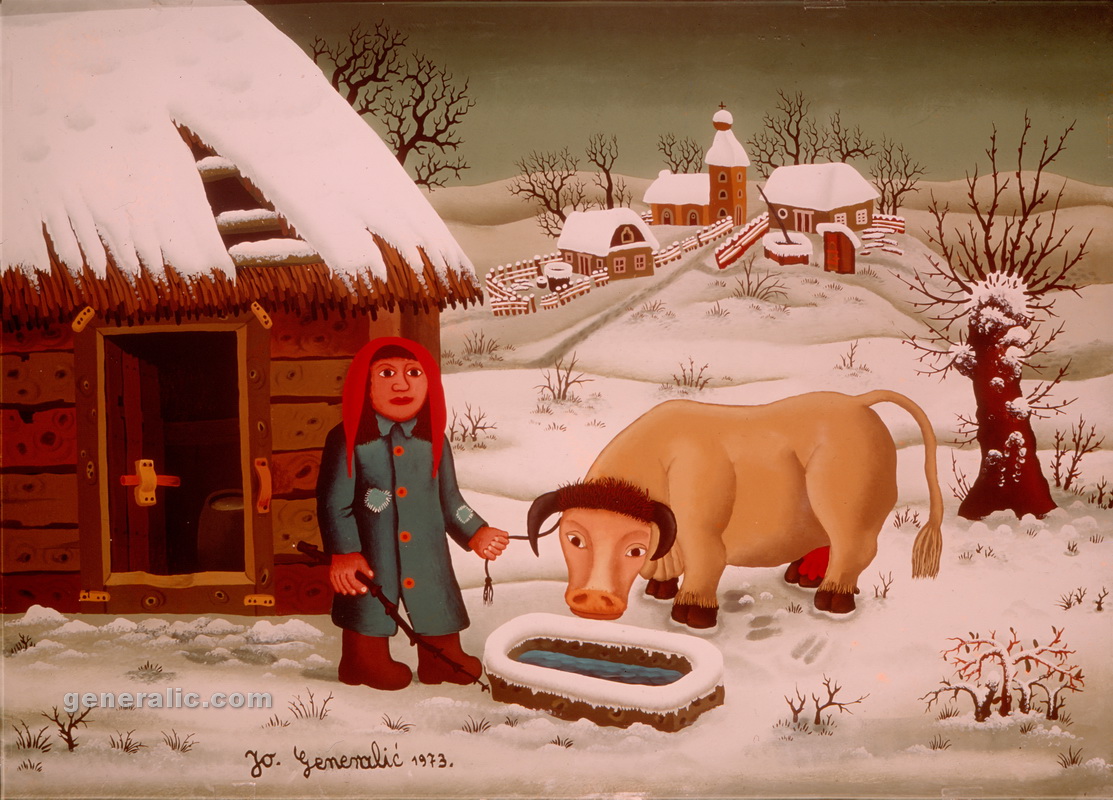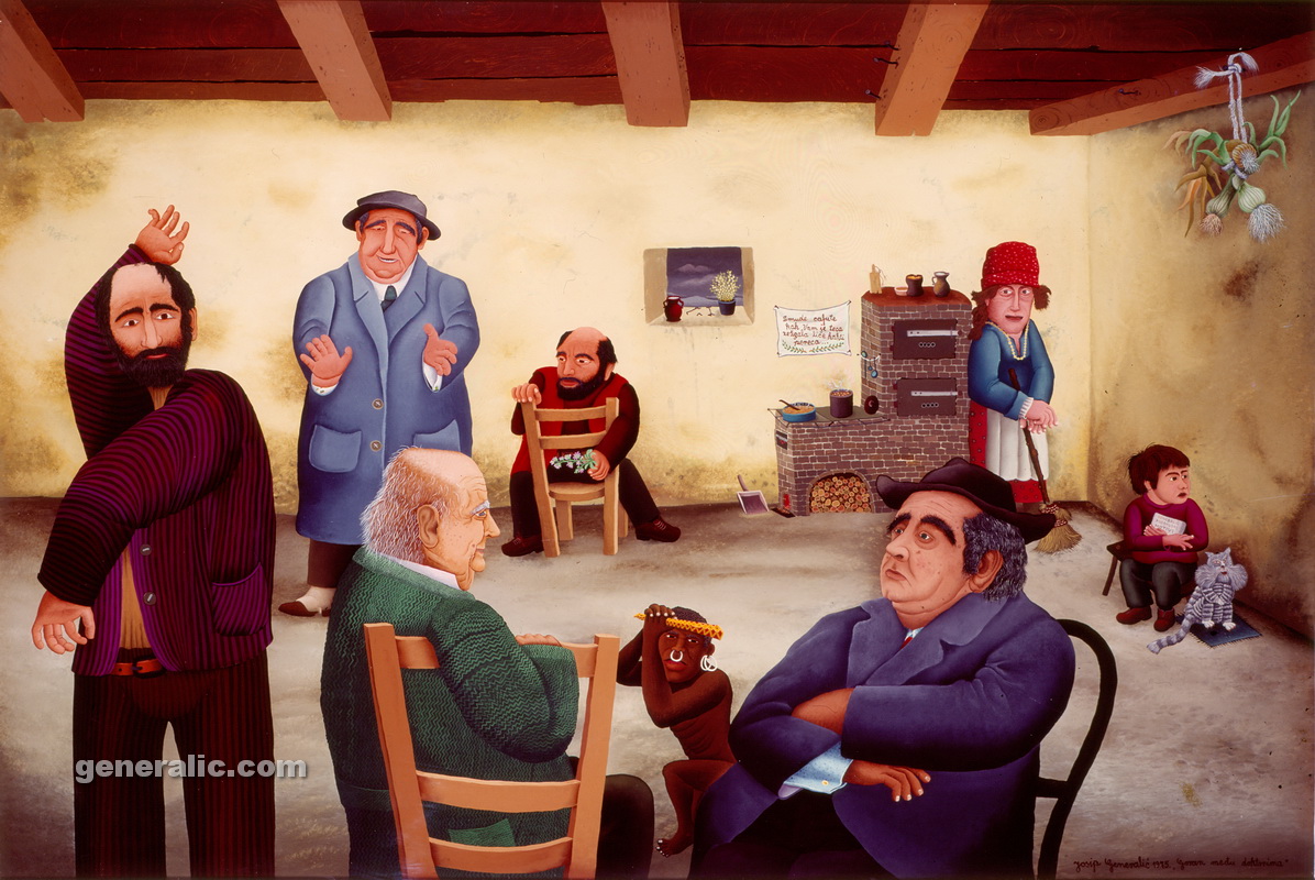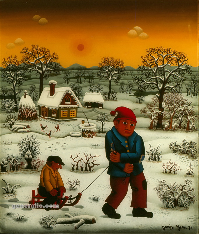 Josip left his native village Hlebine in 1960 and moved to Zagreb where he taught at an elementary school. In 1962 he graduated at the higher Teachers’ college. Josip Generalic got married in 1969 in Hlebine. His son Goran was born Sept. 1, 1971. Due to personal tragedies in his life, some of Generalic works make up the phase which he himself called the “Black Phase”.