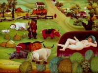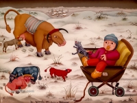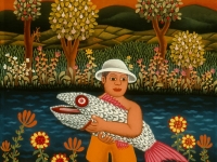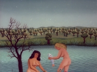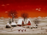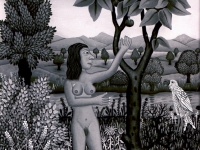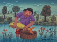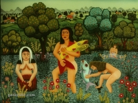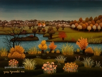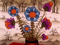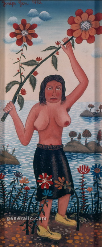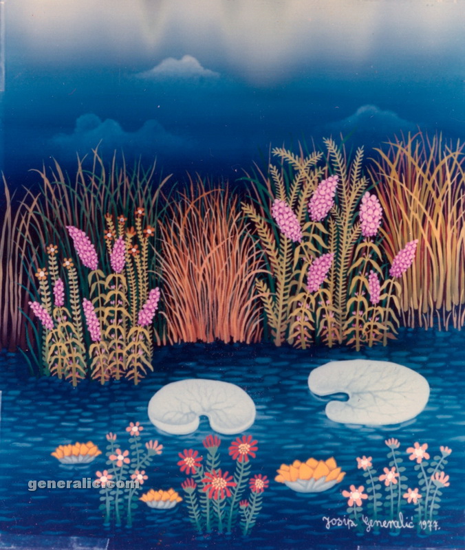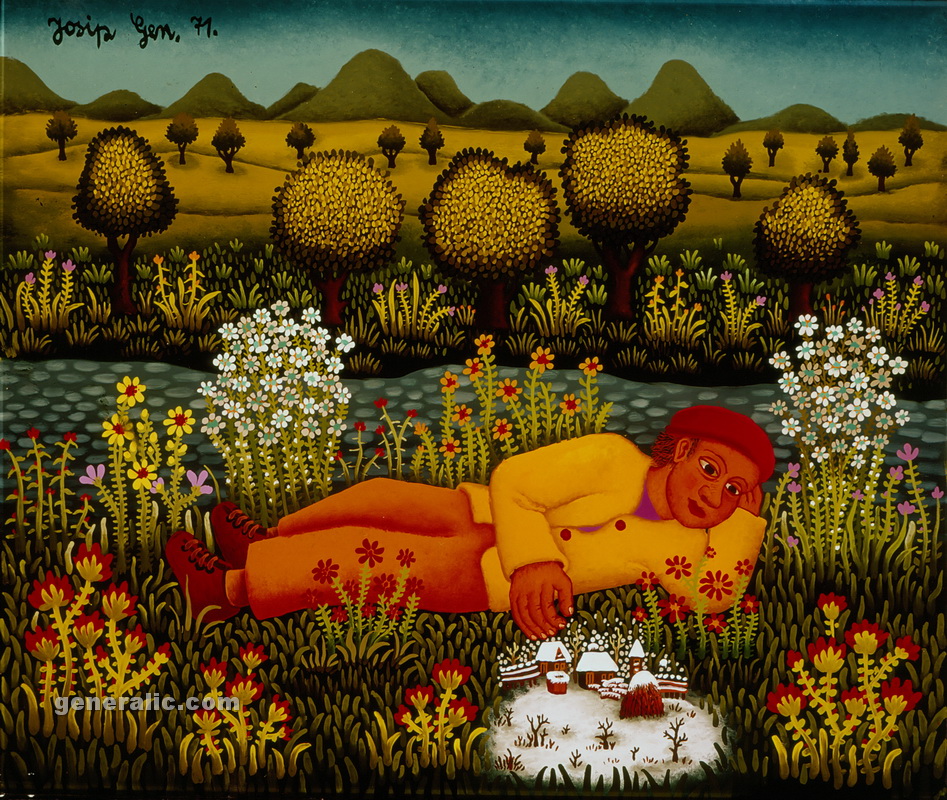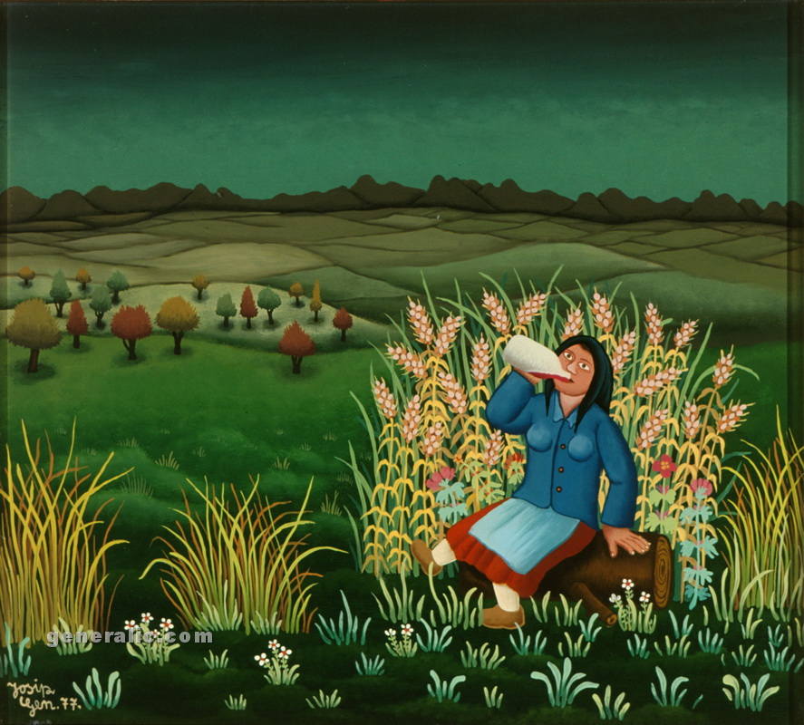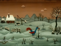 Josip Generalic, the son of the great Croatian naive artist, most of all of the members of the 2nd generation of the Hlebine School, his pressure due to his father’s art and achievements. In the very beginning of his work, Josip followed the paradigm of the Hlebine School with a typical additive method of painting, veristically accentuated, two-dimensionality, absence of modelling, clarity and “purity” of the palette, focus put on details and careful execution (which will remain recognizable in all his phases) with minimal use of perspective built up in a variety of shape sizes arranged in plans. Even in his early works, critics recognized a fear of gaps, a kind of horror vacui in the approach to painting that will be further emphasized in the second phase of his creative output that will be based on vegetal-floral motifs.