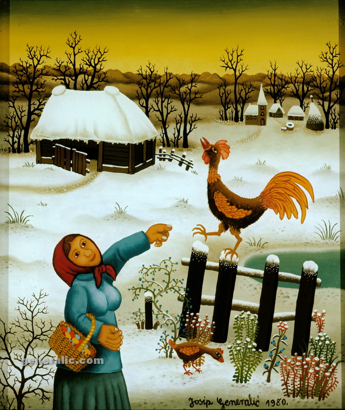Josip left his native village Hlebine in 1960 and moved to Zagreb where he taught at an elementary school. In 1962 he graduated at the higher Teachers’ college. Josip Generalic got married in 1969 in Hlebine. His son Goran was born Sept. 1, 1971. Due to personal tragedies in his life, some of Generalic works make up the phase which he himself called the “Black Phase”.